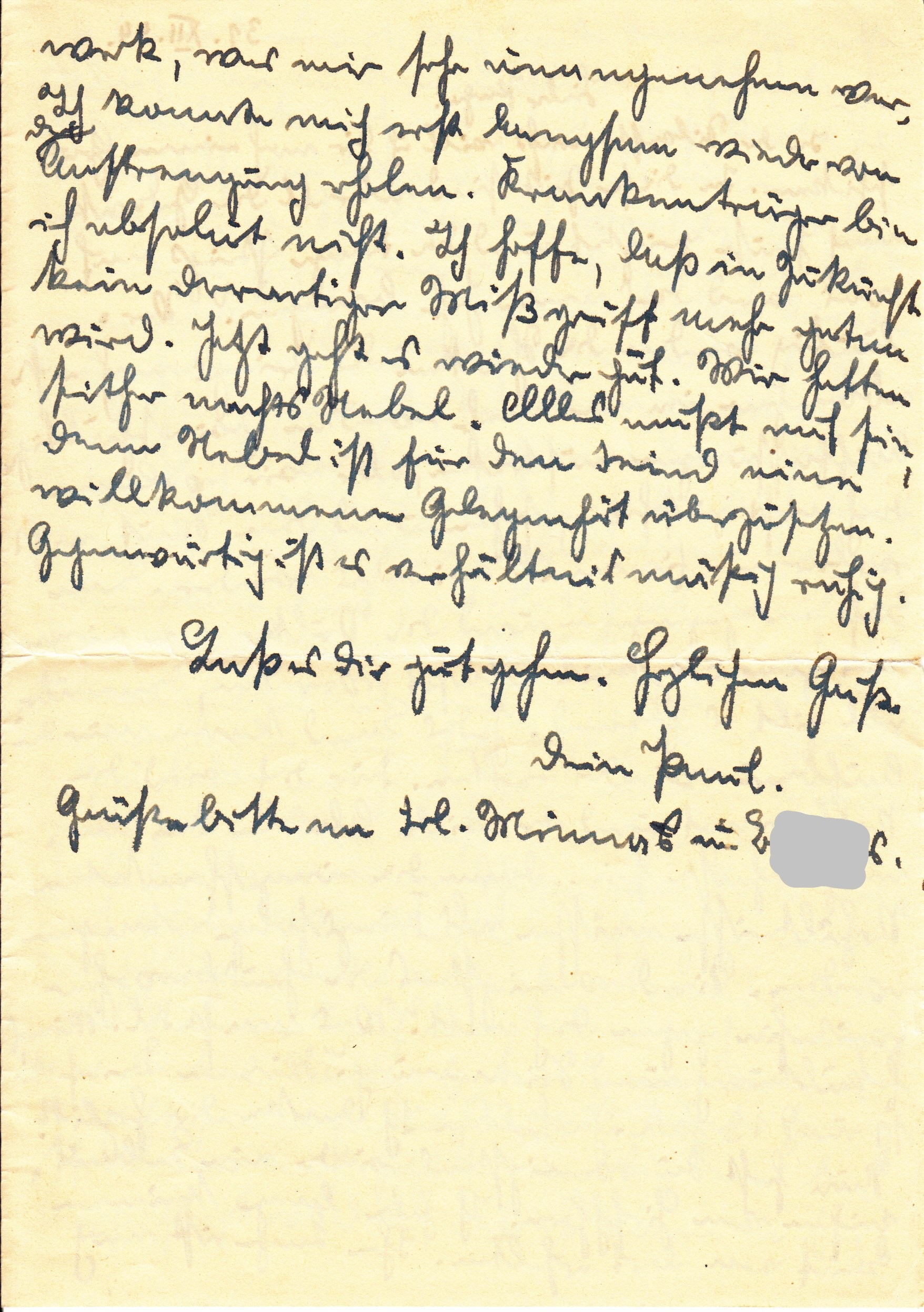 werk, was mir sehr unangenehm war. Ich konnte mich erst langsam wieder von der Anstrengung erholen. Krankenträger bin ich absolut nicht. Ich hoffe, daß in Zukunft kein derartiger Mißgriff mehr getan wird. Jetzt geht es wieder gut. Wir hatten seither nachts Nebel. Alles mußte auf sein, denn Nebel ist für den Feind eine willkommene Gelegenheit überzusetzen. Gegenwärtig ist es verhältnismäßig ruhig.