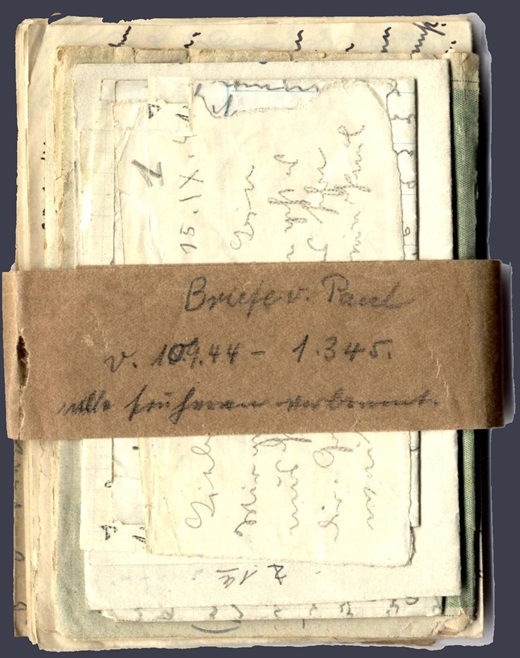 Diese Feldpostbriefe fand ich im Nachlass eines Vorfahrens der Familie. Sie waren mit einer Papierbanderole zu einem Bündel gepackt. Auf der Banderole war mit Bleistift vermerkt:
